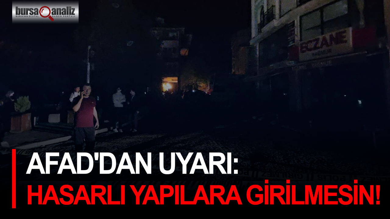 Afet ve Acil Durum Yönetimi Başkanlığı (AFAD), Balıkesir'in Sındırgı ilçesinde meydana gelen 6,1 büyüklüğündeki depremin ardından, bölgedeki hasarlı yapılara girilmemesi uyarısında bulundu.