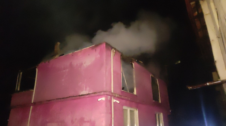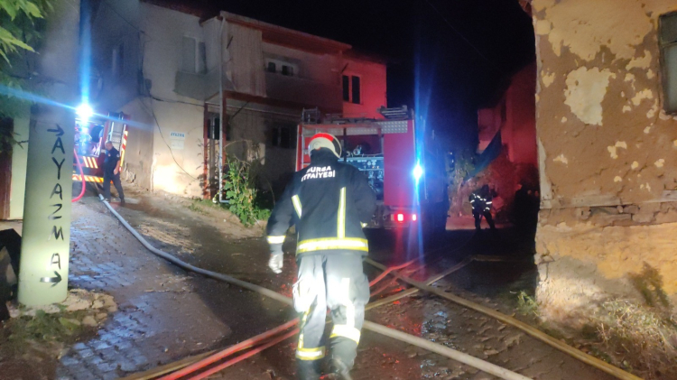 Bu sırada bacada başlayan yangın evin çatısını kapladı. Yangını gören komşuların ihbarı üzerine olay yerine jandarma, sağlık ve itfaiye ekibi sevk edildi. Jandarma ekipleri çevrede güvenlik önlemi alırken, itfaiye ekipleri yangına müdahale etti.