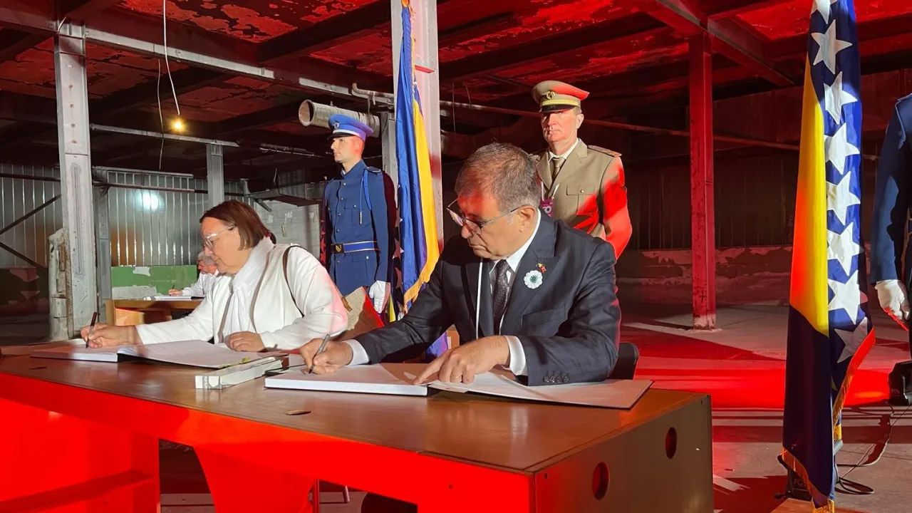 İzmir Büyükşehir Belediye Başkanı Dr. Cemil Tugay, erkek kadın, çocuk yaşlı demeden 8 bin 372 kişinin Sırp güçlerince katledildiği Srebrenitsa Katliamı’nın 30’uncu yılında düzenlenen anma törenlerine katıldı. Kimliği belirlenen 7 kişinin daha toprağa verildiği törende Başkan Dr. Cemil Tugay taziye defterini imzaladı.İZMİR (İGFA) - İzmir Büyükşehir Belediye Başkanı Dr. Cemil Tugay, Bosna Hersek'in doğusundaki Srebrenitsa'da 1995'te Sırp birliklerince 8 binden fazla Boşnak sivilin acımasızca katledildiği soykırımın 30'uncu yılı dolayısıyla düzenlenen anma programına katıldı.