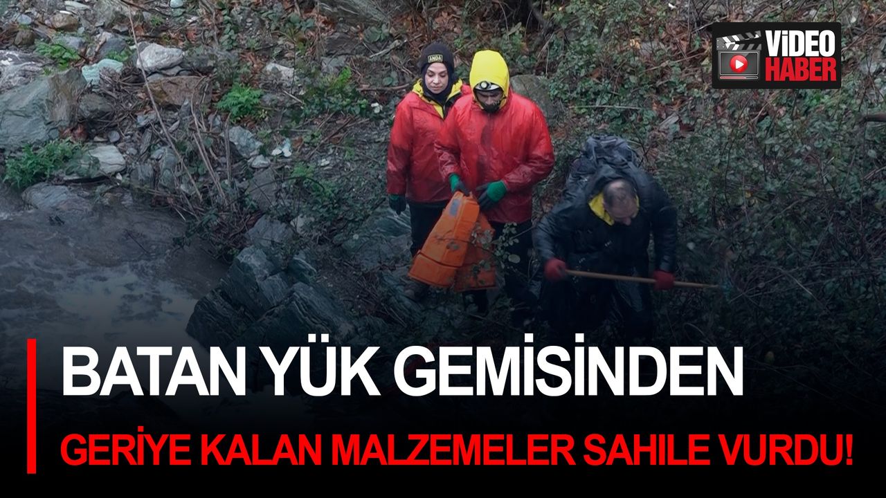 Balıkesir’in Marmara Adası ilçesinden yola çıktıktan sonra fırtınaya yakalanıp İmralı Adası açıklarında batan mermer tozu yüklü gemide kullanılan malzemeler sahile vurdu.