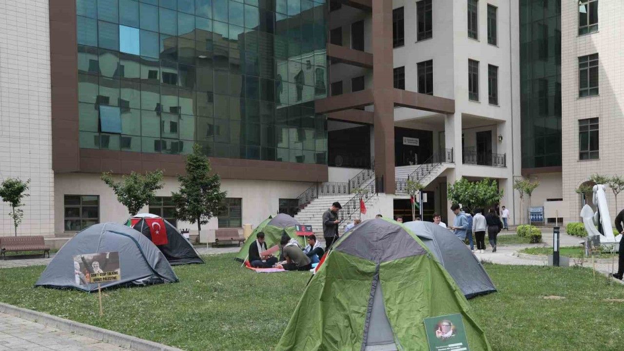 İsrail’in Filistin’e yönelik saldırılarına ilk gününden itibaren tepkisini düzenlediği çeşitli programlarla dile getiren Bursa Teknik Üniversitesi (BTÜ) artan saldırılara da sessiz kalmadı. Bu kapsamda BTÜ öğrenci toplulukları “Gazze İçin Kampüsler Ayağa Yaşasın Küresel İntifada” diyerek bir haftalık çadır nöbetine başladı. Çadır nöbetindeki öğrencileri, BTÜ Rektörü Prof. Dr. Naci Çağlar da yalnız bırakmadı. Öğrenciler, nöbet kapsamında protesto yürüyüşü de gerçekleştirdi. Mimar Sinan Yerleşkesi’nde gerçekleştirilen yürüyüşte, Rektör Yardımcıları Prof. Dr. Beyhan Bayhan, Prof. Dr. Barış Tamer Tonguç ve Prof. Dr. Sinan Uyanık, Genel Sekreter Selim Uzun, akademik ve idari personel ile öğrenciler de yer aldı.