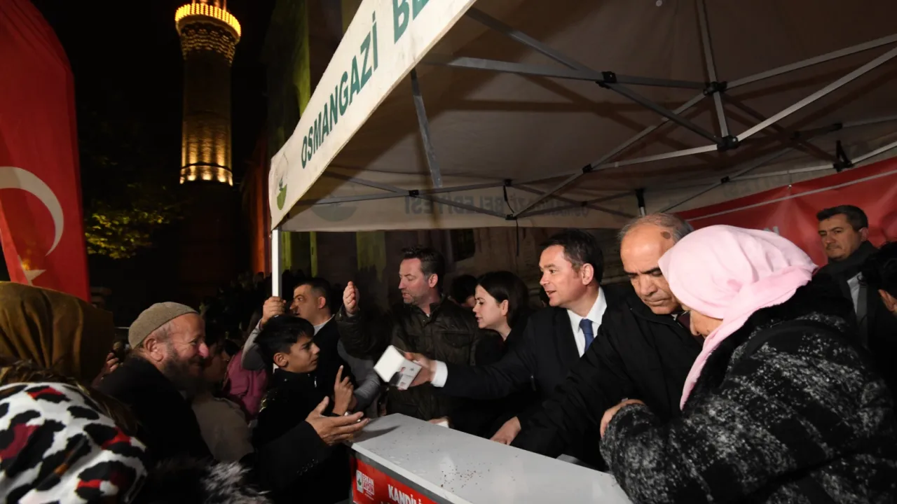 Üç ayların başlangıcını müjdeleyen Regaip Kandili sebebiyle Bursa Ulucami avlusunda vatandaşlarla bir araya gelen Osmangazi Belediye Başkanı Erkan Aydın, yatsı namazı çıkışında Bursalı vatandaşlara kandil simidi ikramında bulundu. Programa Osmangazi Belediye Başkanı Erkan Aydın'ın yanı sıra CHP Osmangazi İlçe Başkanı Raşit Gürbüz, meclis üyeleri ve vatandaşlar katıldı. Kandil simidi ikramında bulunduğu vatandaşların kandillerini tek tek kutlayan Başkan Aydın'a vatandaşlar ikramından dolayı teşekkür etti.