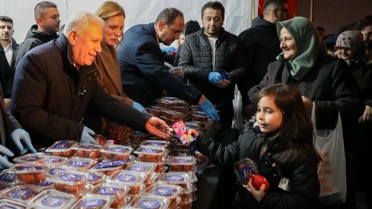 Bursa Büyükşehir Belediyesi, kent genelindeki 21 farklı camide Miraç Kandili dolayısıyla vatandaşlara tatlı ikram ederken, Bursa Büyükşehir Belediye Başkanı Mustafa Bozbey de eşi Seden Bozbey ile birlikte Emirsultan Cami'nde Bursalılarla bir araya geldi.