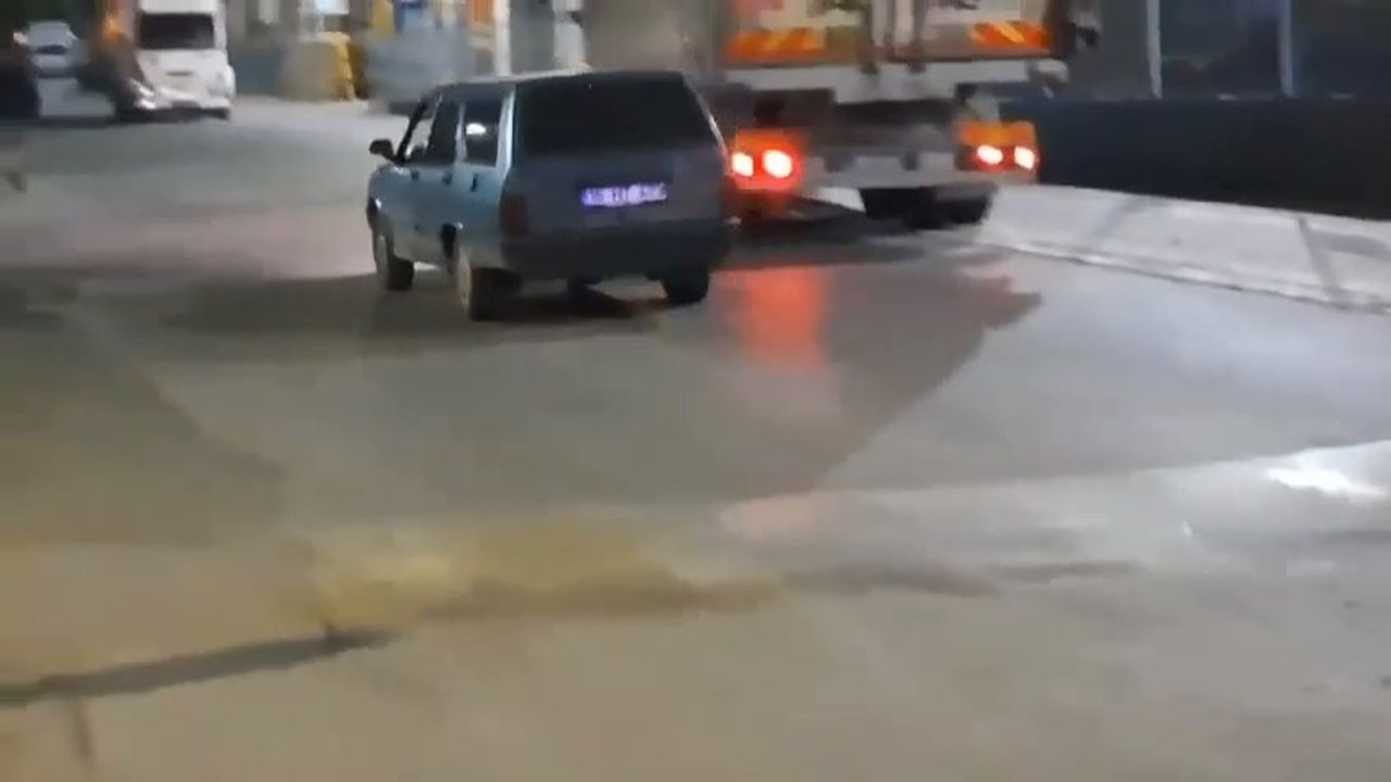 Sürücüsü henüz öğrenilemeyen Tofaş sürücüsü, bölgeye gelerek dakikalarca drift attı.