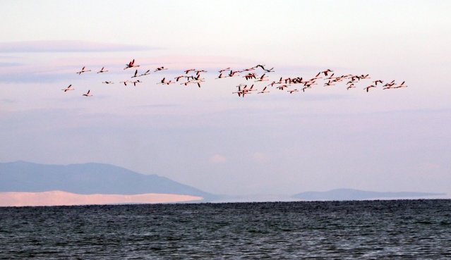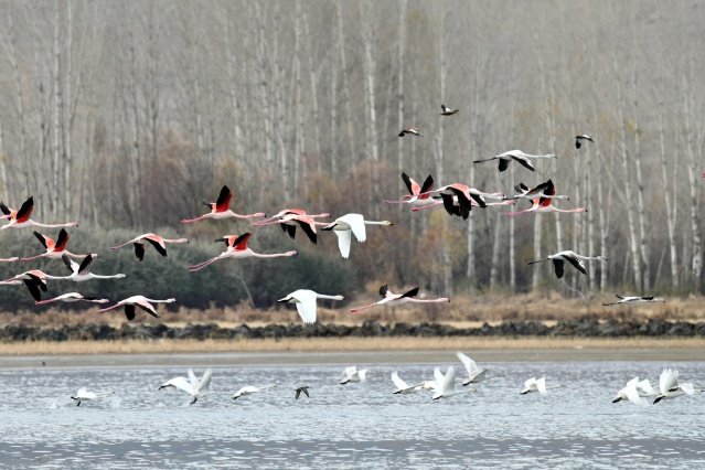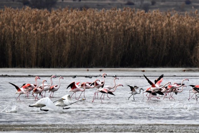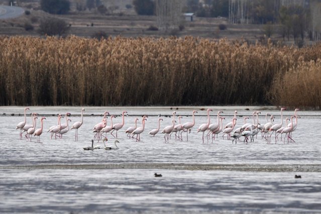 Ötücü kuğuların yanında flamingoları da görebildiklerini belirten Prof. Dr. Adızel, "Flamingoların, Kasım ayının başlangıcında geldikleri üs bölgelere veya Afrika'ya doğru gitmesi gerekiyordu. Fakat az sayıda da olsa yaklaşık 10 yıldır flamingoların bir kısmı gitmiyor; burada kalıyor. Toplam sayıları 8 ile 10 bin civarında olan flamingolardan 500'ü burayı terk etmiyor. Bunu da küresel ısınmaya bağlıyoruz" diye konuştu.