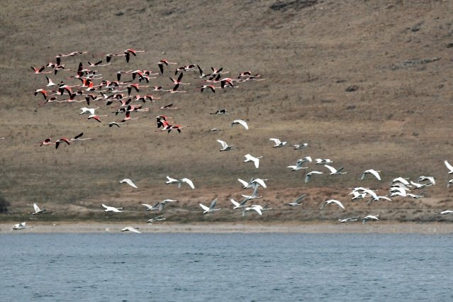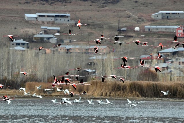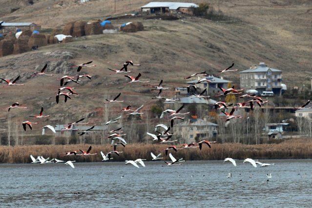 Göçmen kuşların Kuzey Afrika'dan İran'a uzanan yolculuğunda en önemli konaklama merkezlerinden Van Gölü havzası, bu yıl da birçok kuş türüne ev sahipliği yapıyor. Havaların ısınmasıyla konaklamak için kentteki sulak alanlara akın eden binlerce flamingo, iri gövdeleri, zarif boyunları ve uzun bacaklarıyla ziyaretçilere Van Gölü'nün maviliklerinde eşsiz görsel şölen sunuyor. Van Gölü Havzası, her yıl kış aylarında konaklamak için bölgedeki sulak alanlara gelen ötücü kuğuları da konuk ediyor. Rusya'nın Sibirya bölgesinden göç eden beyaz ötücü kuğular ile yaz aylarında Van'a gelen flamingolar, Van Gölü sahilinde bulunan Gevaş'ın Göründü sazlığında görsel şölen sunuyor. Van Yüzüncü Yıl Üniversitesi (YYÜ) Fen Fakültesi Biyoloji Bölümü Öğretim Üyesi Prof. Dr. Özdemir Adızel, ülkemizin Afrika, Asya ve Avrupa arasında hayvan göçleri arasında stratejik ve önemli bir konumda bulunduğunu dünyada sıcak sayılan noktalardan biri olduğunu söyledi. Bu sıcak noktalardan birinin Van Gölü Havzası olduğunu anlatan Prof. Dr. Adızel şöyle konuştu: