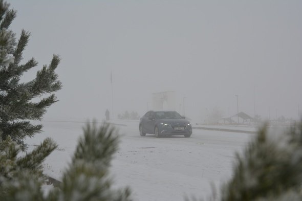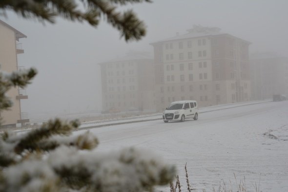 Sarıkamış'ta kar ve sis hayatı olumsuz etkiledi, her yer beyaza büründü
