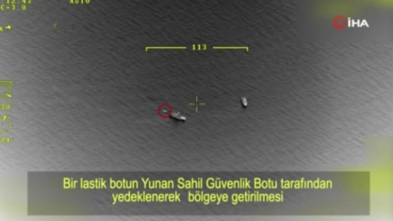 İleryoz Adası doğusunda Yunan Sahil Güvenlik botu tarafından taşınan düzensiz göçmenlerin hayatlarını tehlikeye düşürecek şekilde lastik botla açık denize bırakıldığı dakikalar insansız hava aracı tarafından dakika dakika kaydedildi.