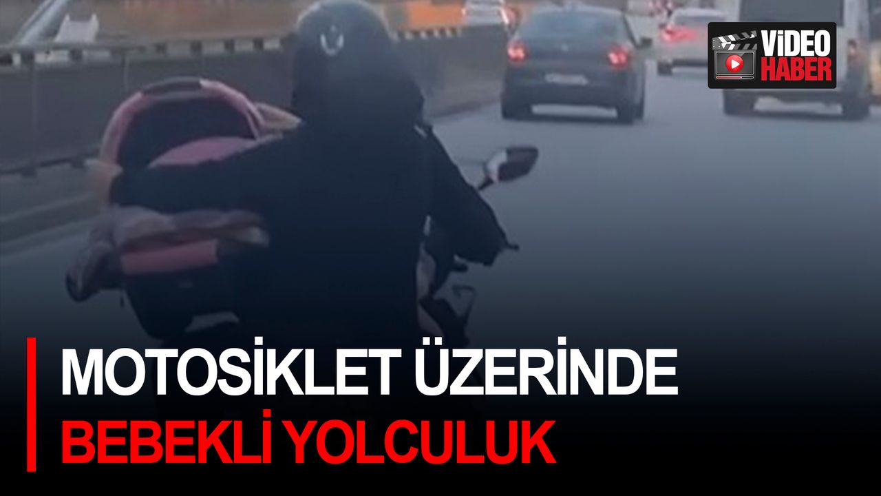 Bursa’nın Yıldırım ilçesinde işlek cadde üzerinde ilerleyen motosiklet sürücüsü bebeği pusette taşıdı. Tehlikeli yolculuk kameralara yansıdı.