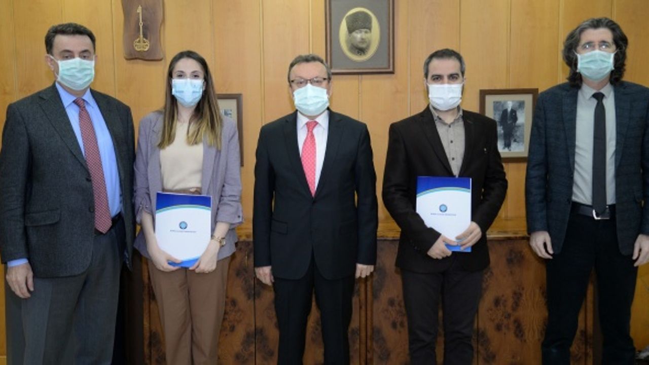 Rektör Prof. Dr. Ahmet Saim Kılavuz, Rektör Yardımcıları Prof. Dr. İrfan Kırıştıoğlu ve Prof. Dr. Ferudun Yılmaz’la birlikte genç akademisyenleri makamda ağırladı. Başarılarından dolayı iki akademisyeni de tebrik eden Prof. Dr. Ahmet Saim Kılavuz, teşekkür belgesi takdim etti. Kılavuz, önceki yıl göreve başlayan akademisyenlerin aynı kararlılık ve azim ile çalışmalarına devam edeceklerine inandıklarını vurguladı.
