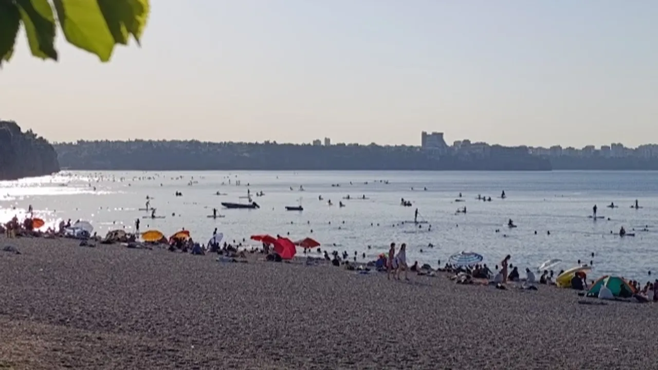 Konyaaltı Plajı, sıcak yaz günlerinde Antalyalıların ve turistlerin sabah-akşam vazgeçilmez adresi olmaya devam ediyor. Antalya’da yaz sıcaklarının etkisiyle bunalan vatandaşlar, serinlemek için Konyaaltı Plajı’na koşarken, bu ilde adeta deniz bile yanıyor.ANTALYA (İGFA) -Antalya’da hava sıcaklıklarının mevsim normallerinin üzerinde seyretmesiyle, serinlemek isteyenler Konyaaltı Plajı’na akın etti.