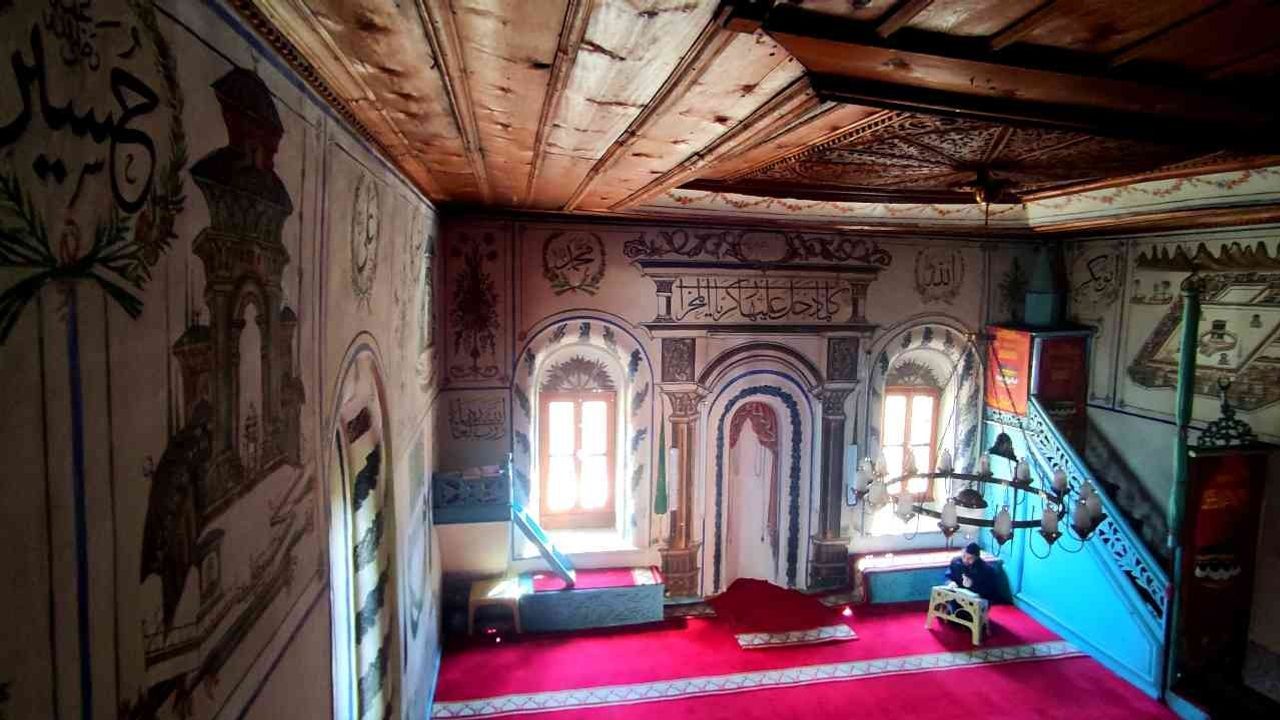 Caminin içerisinde kalem işleri ve ahşap süslemeleri bulunuyor. Caminin duvarlarında, pencere kenarlarında ve mihrapta başta selvi olmak üzere çiçek motifleri, kıvrık dallarla bezeli kalem işleri dikkati çekiyor. Görenleri kendine hayran bırakan tarihi camiye köylüler gözü gibi bakıyor.