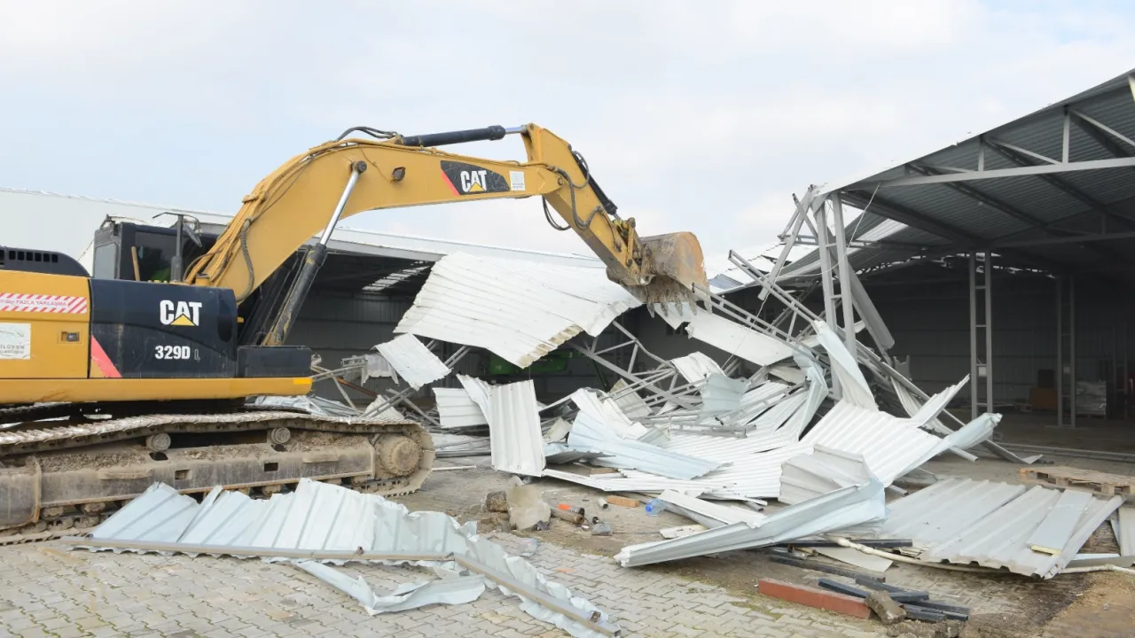 İlk olarak Ürünlü Mahallesi'nde, tarım alanı üzerine inşa edildiği belirlenen ve depo olarak kullanılan kaçak yapıya müdahale edildi. İçerisinde çeşitli malzemelerin bulunduğu deponun yıkımı, malzemelere zarar verilmeyecek şekilde titizlikle yürütüldü.