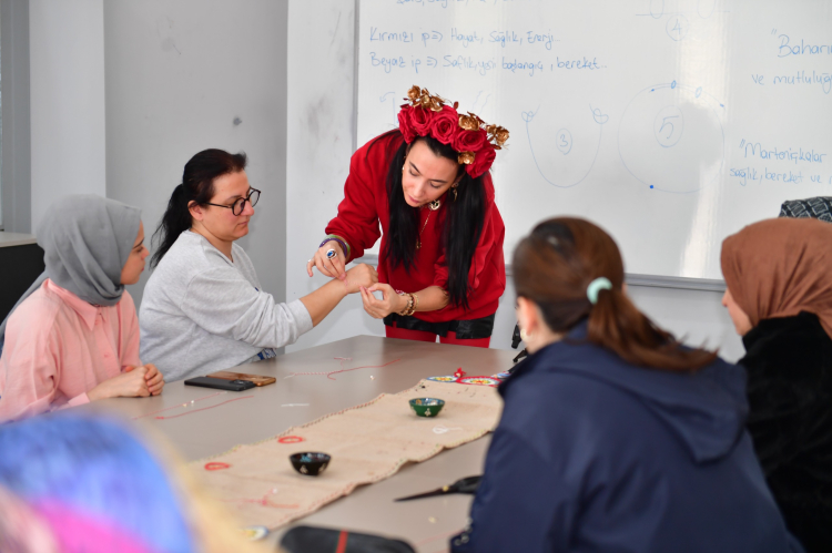 Bursa Osmangazi Belediyesi'nin düzenlediği 'Marteniçka Atölyesi', kadınlara Balkan kökenli geleneksel bir bileklik kültürünü tanıma ve uygulama fırsatı sundu.