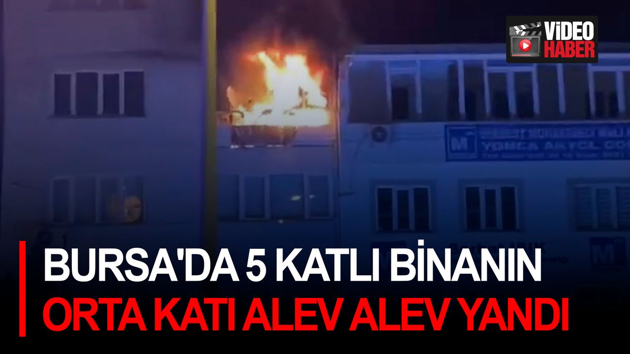 Bursa'da 5 katlı binanın orta katı alev alev yandı