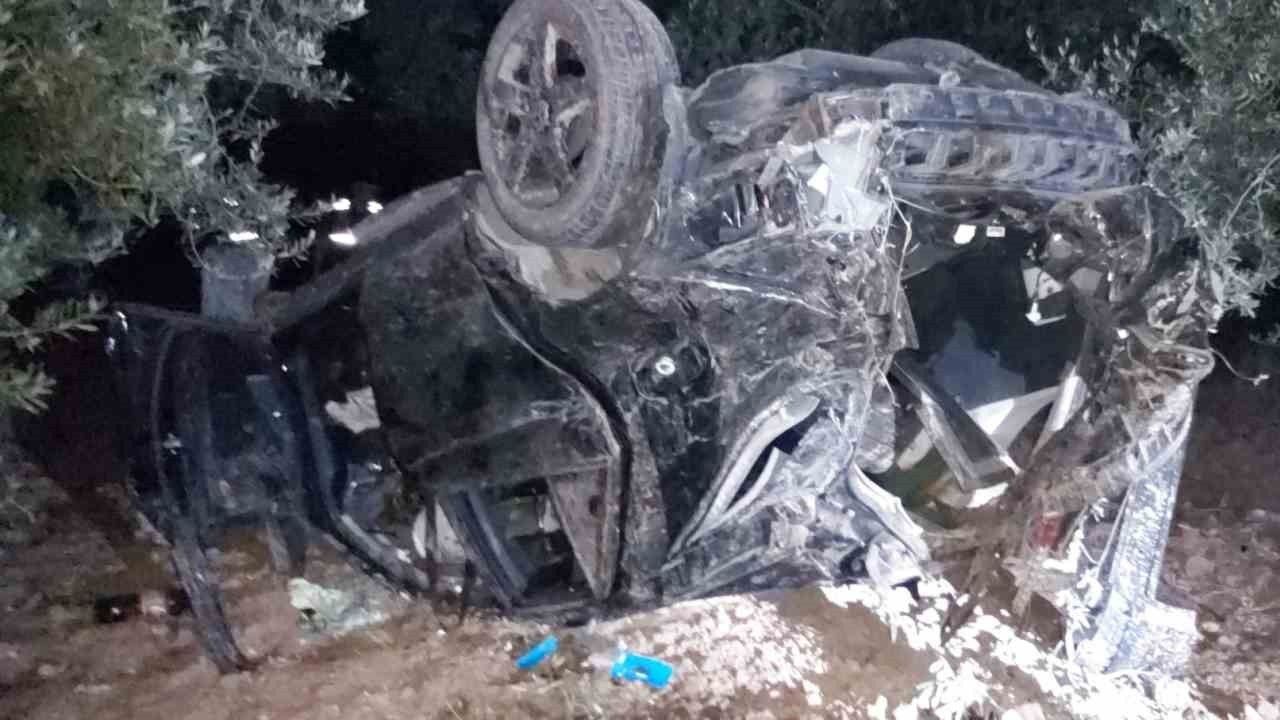 İngiliz vatandaşı sürücünün direksiyon hakimiyetini kaybetmesiyle zeytinlik içine giren araç 60 metre sürüklenip takla attı. Kazada sürüklenen otomobilin sürücüsü ağır yaralandı.