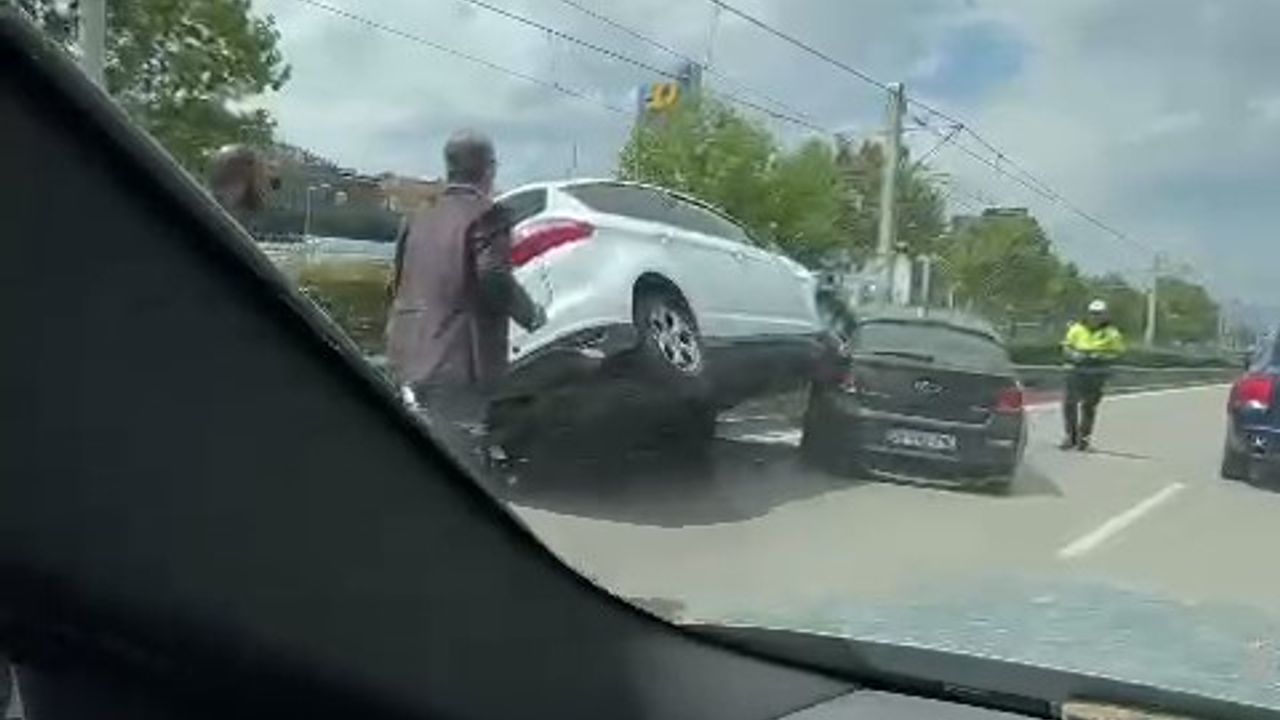 Bursa'nın Mudanya Caddesi üzerinde ilginç kaza meydana geldi. Kazada arkadan gelen araç öndeki aracın üstüne çıktı.