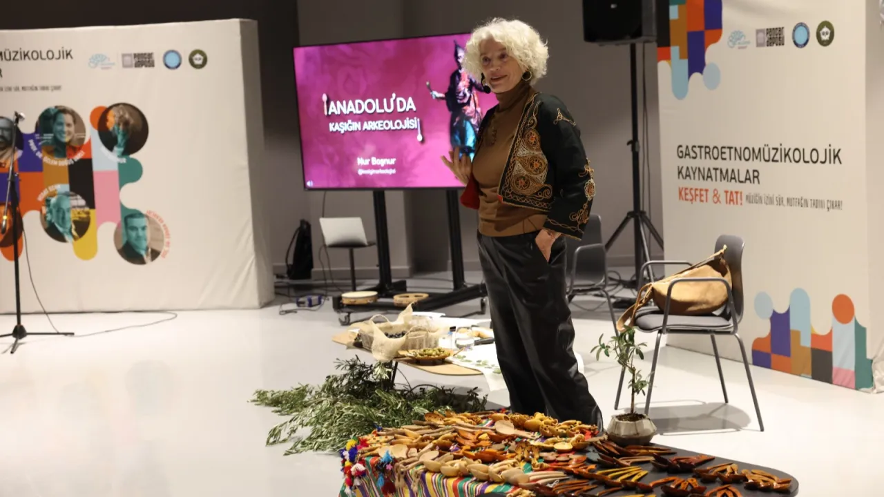 Programda 'Anadolu'da Kaşığın Arkeolojisi' başlıklı bir sunum gerçekleştiren Nur Başnur, kaşığın sadece bir mutfak gereci olmadığını, aynı zamanda derin bir kültürel birikimi temsil ettiğini vurguladı. Başnur, kaşığın Türk ve dünya tarihindeki kullanım alanlarını, gelişim sürecini, dini ve kültürel sembollerini katılımcılarla paylaştı. Kaşığın sofradaki yerinden halk kültüründeki yansımalarına kadar pek çok detay, izleyiciler tarafından ilgiyle dinlendi.