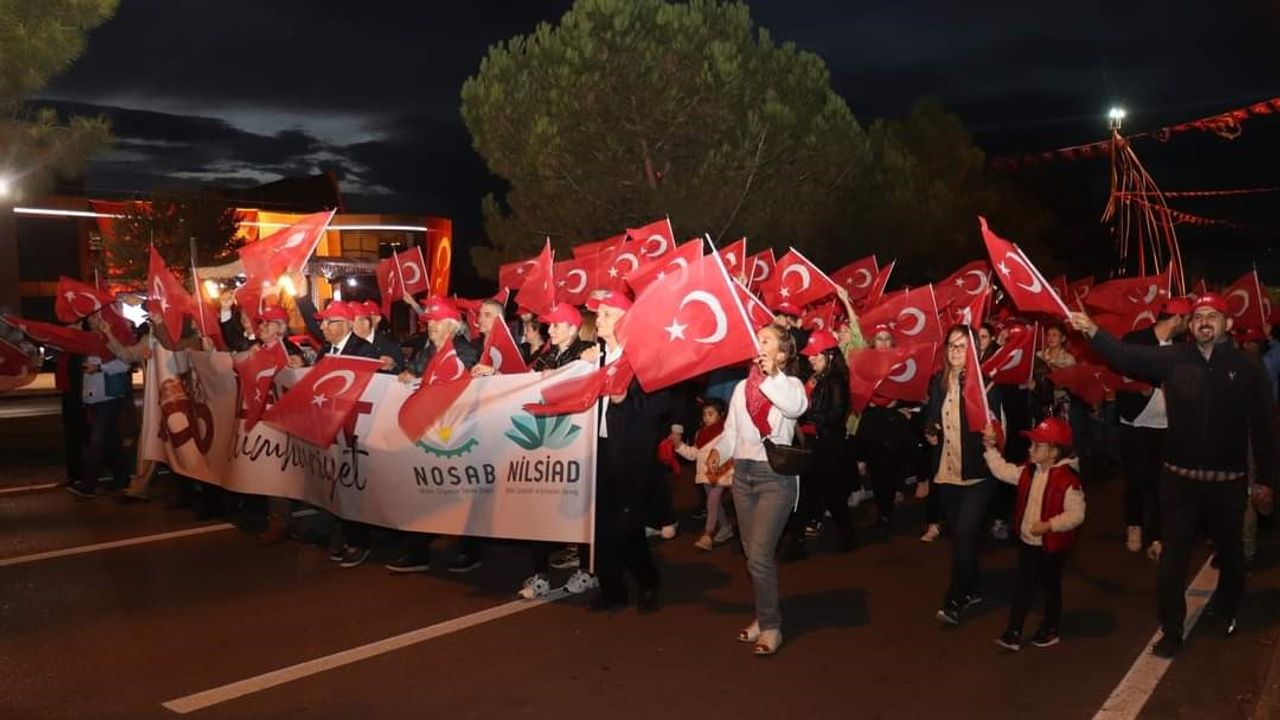 Türk Bayrakları eşliğinde NOSAB Atatürk Bulvarı’nda gerçekleştirilen Cumhuriyet Korteji’nin ardından etkinlik alanında bir konuşma yapan NOSAB Başkanı Erol Gülmez, Cumhuriyet’i meydanlarda kutlamak istediklerini ifade etti.