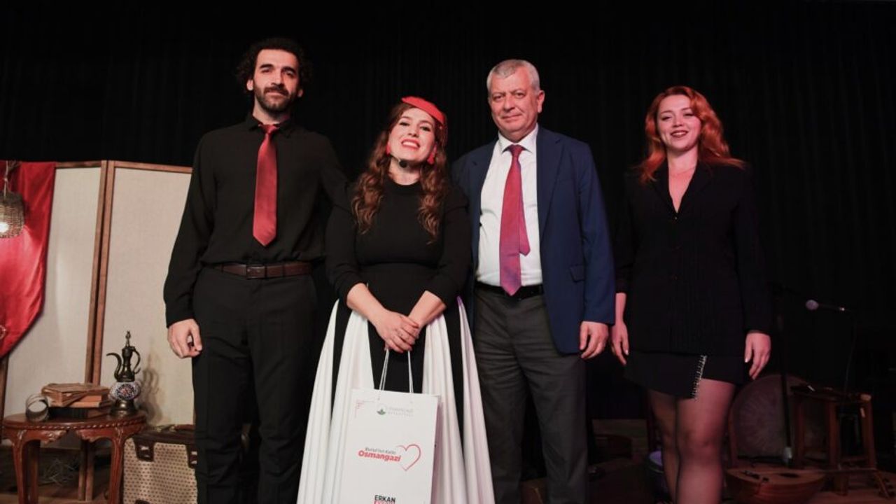 Osmangazi Belediye Başkan Yardımcısı Mutlu Esendemir, gecenin anısına Hikaye Anlatıcısı Seher Kander’e Osmangazi’yi anlatan hediye takdim etti.