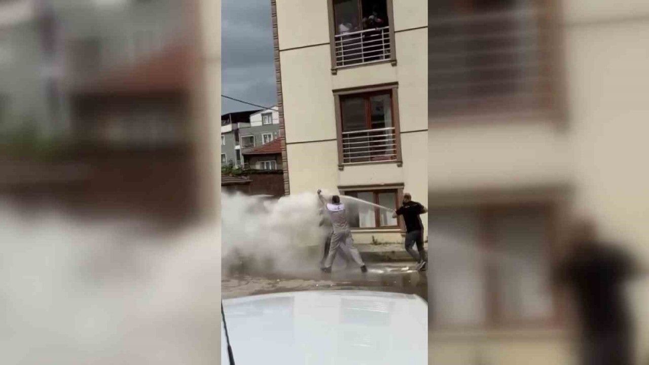 Bursa’nın Gürsu ilçesinde geleneklerini yaşatan damadın arkadaşları, ellerine ne geçtiyse damada attı. Kovalarla su dökülen damat, una ve yumurtaya bulunmaktan kurtulamadı. Vatandaşların camlardan ve araçların arkasından güle güle izlediği anlarda, bir kişinin ise yangın tüpüyle gelmesi dikkat çekti. Yangın tüpünü damada boşaltan arkadaşı, geri kalanını ise diğer arkadaşına sıktı.