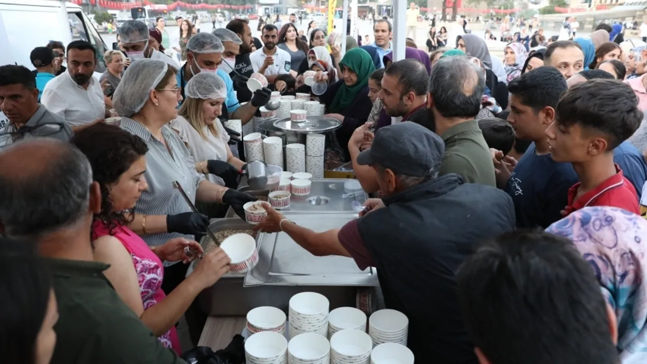 Diyarbakır Büyükşehir Belediyesi, Muharrem ayı dolayısıyla kentin 4 farklı noktasında düzenlediği etkinlikte 20 bin kişiye aşure dağıttı.DİYARBAKIR (İGFA) - Diyarbakır Büyükşehir Belediyesi Sosyal Hizmetler Dairesi Başkanlığı, Muharrem Ayı nedeniyle kentin farklı noktalarında aşure etkinliği düzenledi. Etkinlik kapsamında Dağkapı Meydanı, Koşuyolu Parkı, Gazi Yaşargil Eğitim ve Araştırma Hastanesi, Dicle Üniversitesi Hastanesi'nde stantlar kuruldu. Yoğun ilginin olduğu etkinlikte, 4 farklı noktada 20 bin kişiye aşure dağıtıldı.
