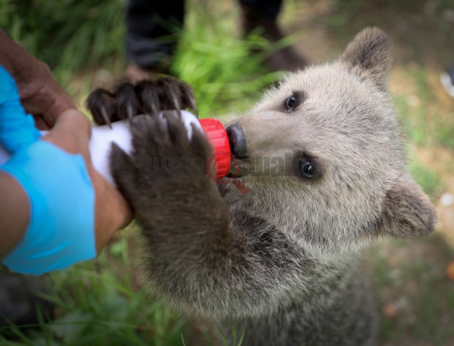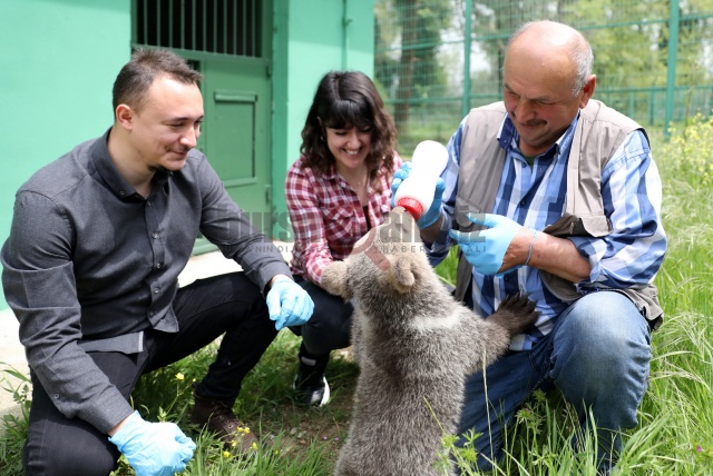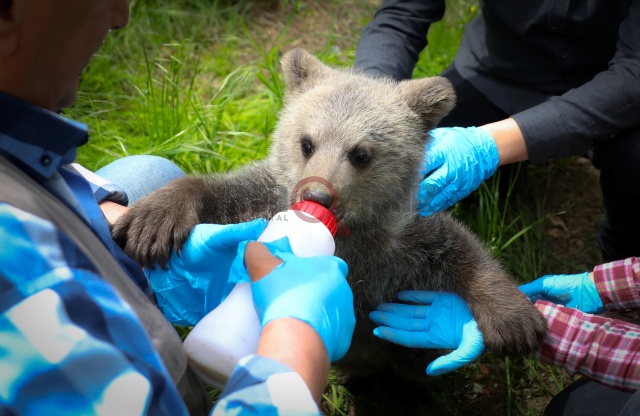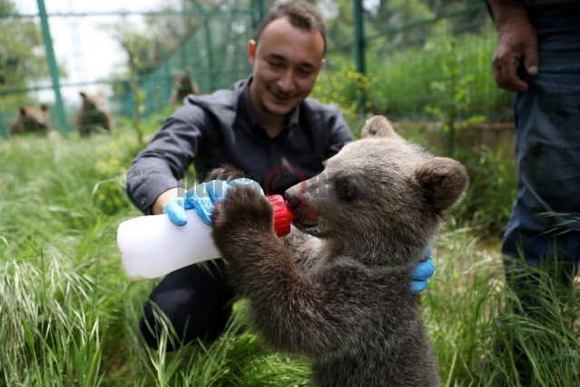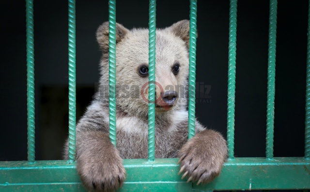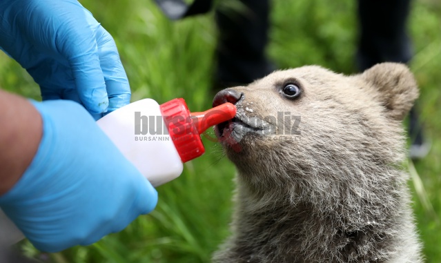 Bursa’da barınaktaki 3 aylık yavru ayı, biberonla besleniyor