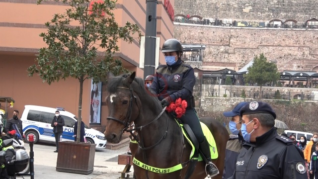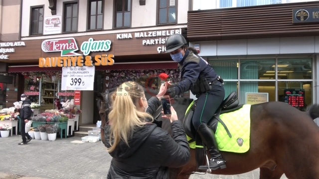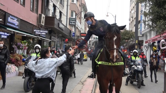 Bursa'da kadın polisler 8 Mart Dünya Kadınlar Gününü karanfil dağıtarak kutladı