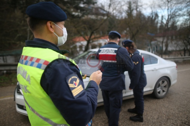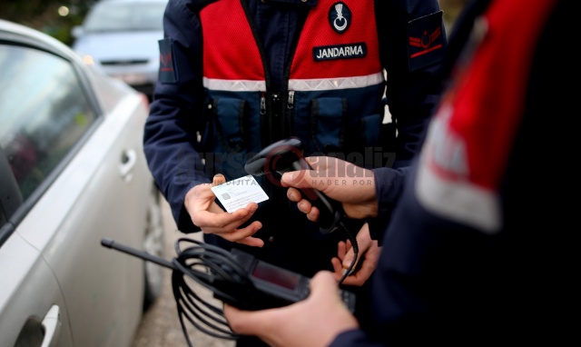 Araç sürücülerinin kimlikleri barkod cihazları ile okutulurken, emniyet kemeri, ehliyet, ruhsat, maske ve mesafe kontrolleri de gerçekleştirildi.