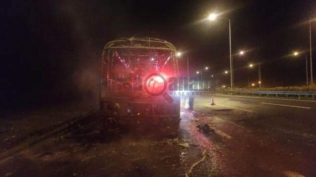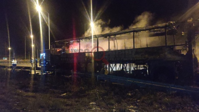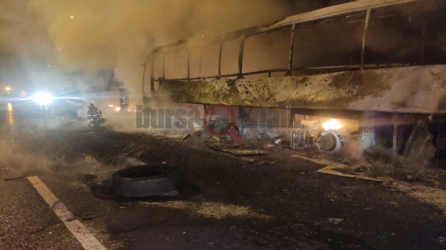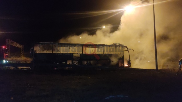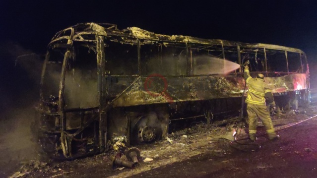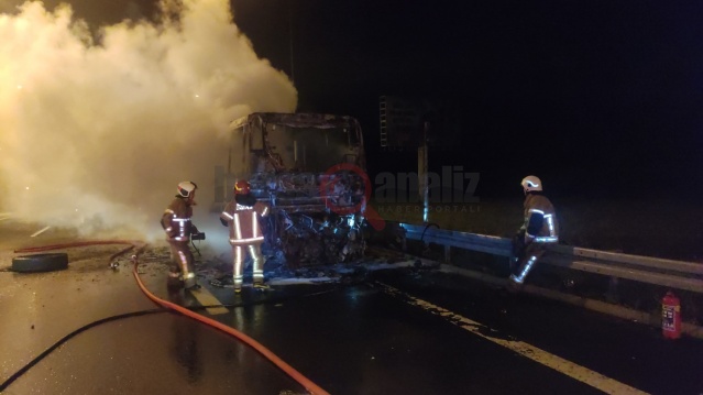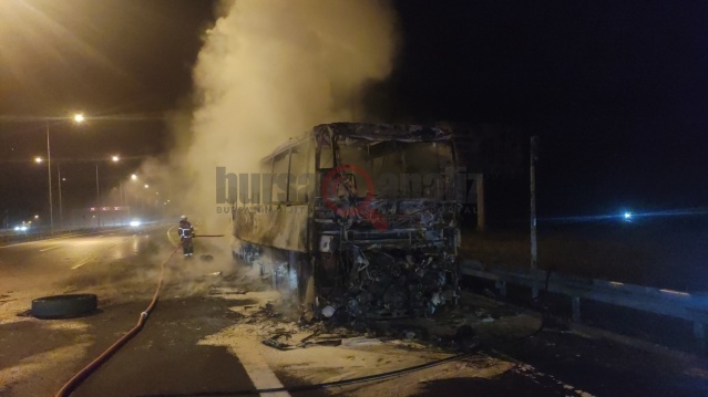 Lastiği patlayan otobüs alev alev yandı, facianın eşiğinden dönüldü
