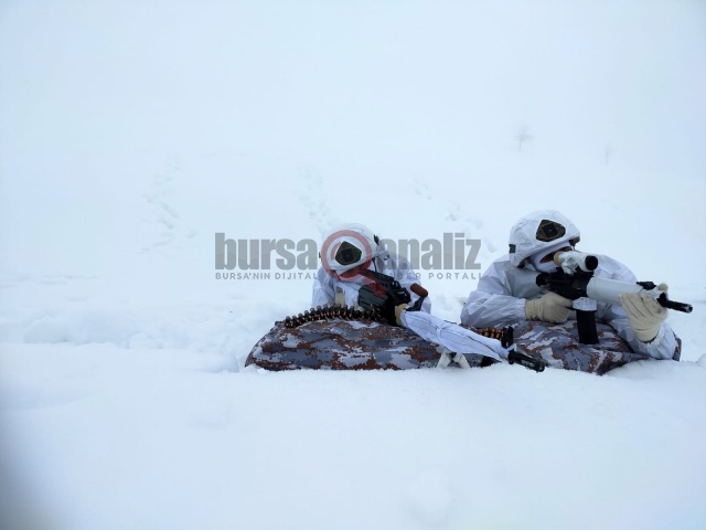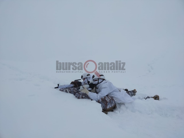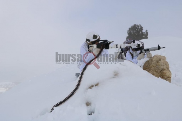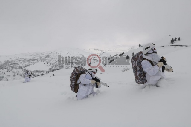 Yer yer 1 metreyi bulan karlı dağlarda timler, teröristlerin barınma noktalarına operasyonlar düzenleyerek çalışmasını sürdürürken, o anlar da görüntülere yansıdı. Yeri geldiğinde 1 metre karda yürüyen timler, yeri geldi mi beyaz kıyafetleri ile sahada görünmez oluyor.