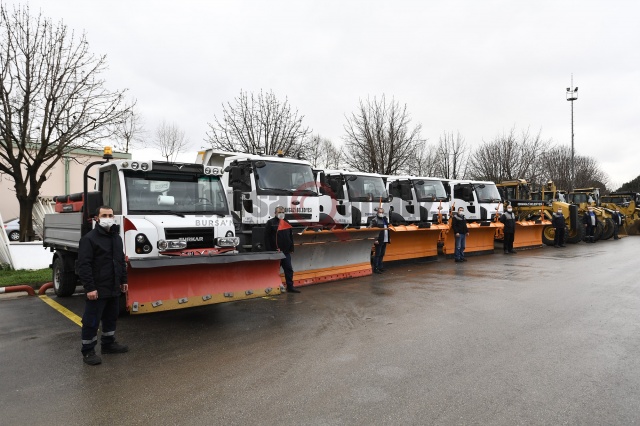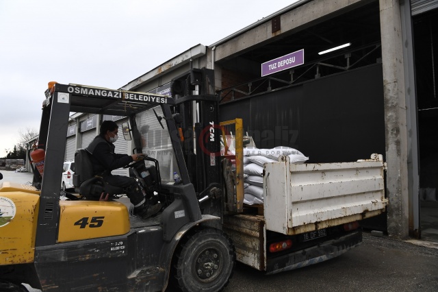 Osmangazi’nin tamamında kar, buzlanma ve dona karşı yerinde ve zamanında müdahale edebilmek için, 60 personel, 20 iş makinası (greyder, loder, jcb), 3 tuz aracı, 2 kar küreme ve tuz serpme aracı, 4 yalnızca kar küreme aracı ile birlikte üç vardiya olarak kesintisiz şekilde görev yapacak.