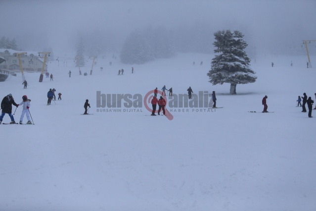 Yurt içi ve yurt dışından otellere rezervasyon yaptırarak kış tatilini Uludağ'da geçiren turistler yoğun sis ve tipiye rağmen kayak yapmayı sürdürdü.