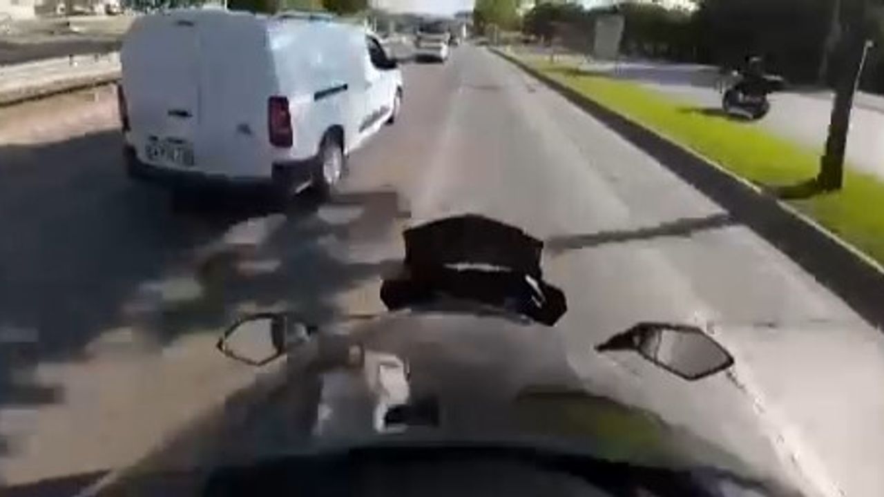 Bursa’da motosikletiyle ilerleyen bir sürücü, orta şeritteki aracın sinyal vermeden aniden önüne kırmasıyla ölümden döndü. Motosikletlinin haklı tepkisine sinirlenen ticari aracın sürücüsü bir de küfrederek karşılık verdi. O anlar kask kamerasına yansıdı.