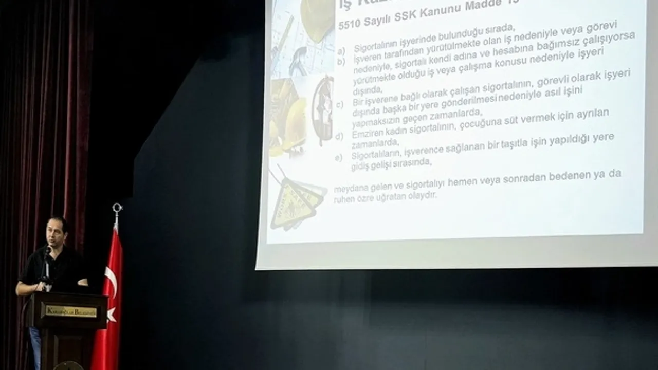 Karabağlar Belediyesi, çalışanlarının iş güvenliği bilincini artırmak ve olası iş kazalarının önüne geçmek amacıyla kapsamlı bir “İş Güvenliği Eğitim Semineri” düzenledi. Seminere belediye personelleri yoğun ilgi gösterdi.İZMİR (İGFA) - Karabağlar Belediyesi Konferans Salonu’nda gerçekleşen eğitimde, İş Güvenliği Uzmanları Pelin Yıldız ve Kenan Ekmen, katılımcılara iş güvenliği kuralları, acil durumlarda alınması gereken önlemler, yangın tüpü kullanımı, kişisel koruyucu donanımların önemi ve iş kazalarının önlenmesi gibi konularda ayrıntılı bilgiler verdi.