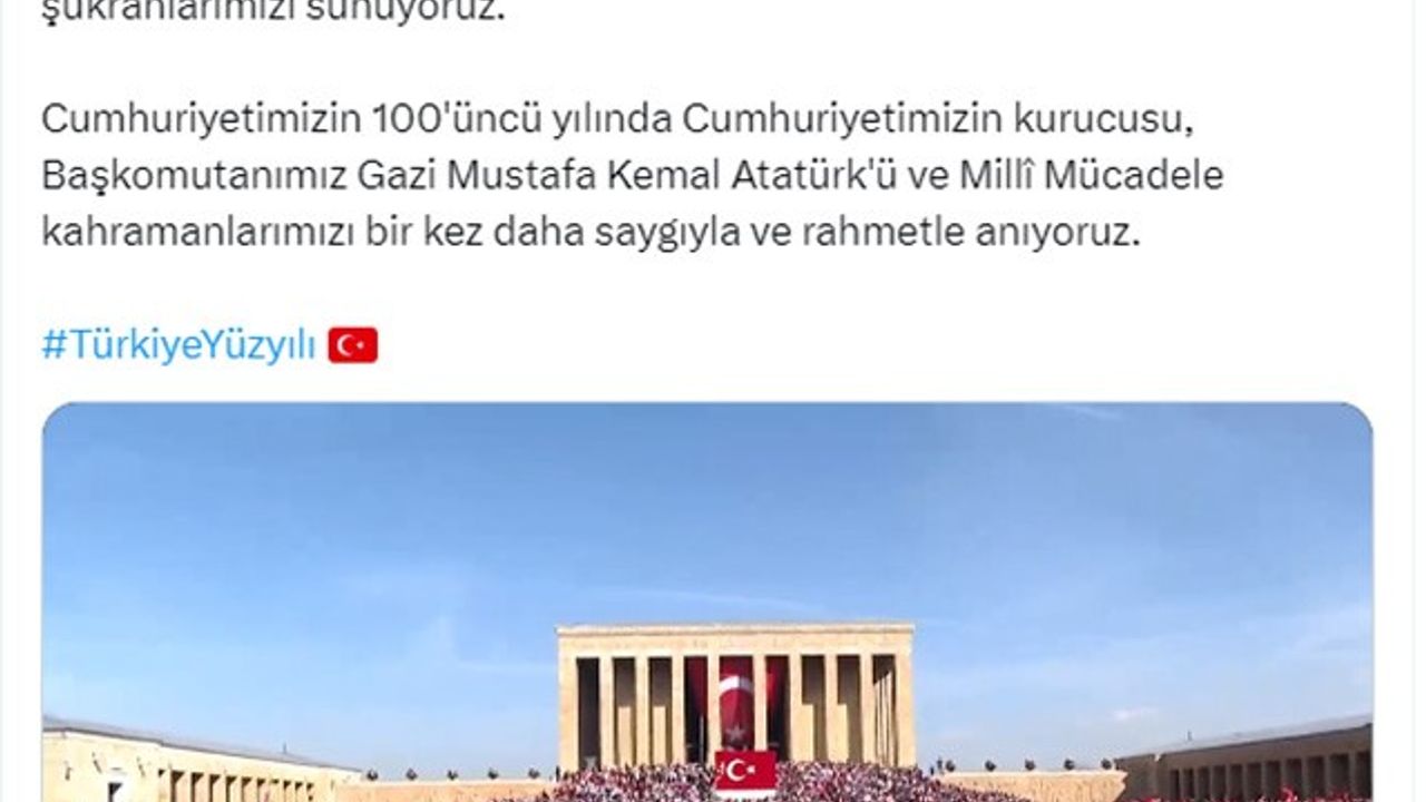 Milli Savunma Bakanlığı, sosyal medya hesabından yaptığı paylaşımda, “29 Ekim Cumhuriyet Bayramı dolayısıyla Anıtkabir'e akın eden ve yeni ziyaretçi rekorunu kıran 1 milyon 182 bin 425 ziyaretçimiz ile yoğun kalabalıktan dolayı ziyaret gerçekleştiremeyen tüm halkımıza şükranlarımızı sunuyoruz” ifadelerine yer verdi.