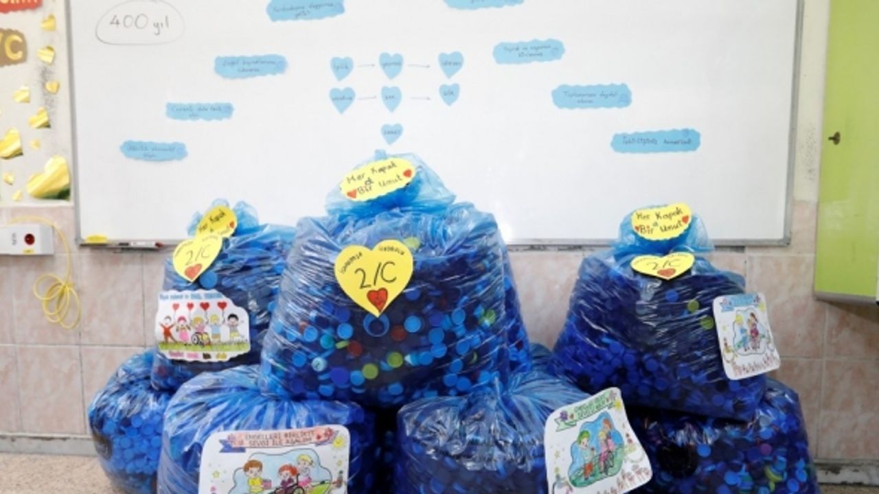 Bursa’nın İnegöl ilçesinde, İshakpaşa İlkokulu 2C sınıfı öğrencileri, 100 kilogram mavi kapak toplayarak engelli aracı kampanyasına destek için İnegöl Belediyesi’ne teslim etti. Bu örnek davranış sonrası Belediye Başkanı Alper Taban öğrencileri sınıfta ziyaret ederek hem teşekkür etti hem de hediye takdiminde bulundu.