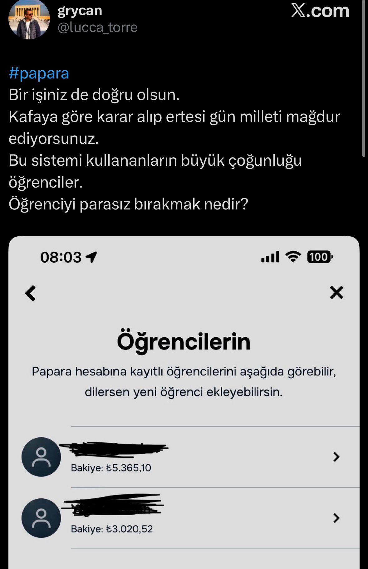 Kullanıcıların büyük çoğunluğunu oluşturan öğrenciler, özellikle harçlık ödemeleri ve ulaşım harcamaları için Papara’yı kullandıklarını belirterek mağduriyet yaşadıklarını dile getirdi.