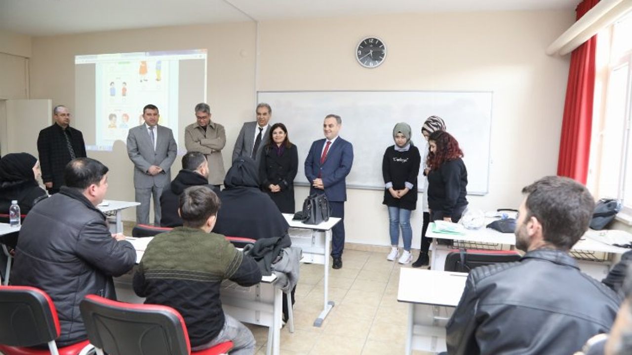 Ziyaretinde ilk olarak Kayseri Valiliği, İl Göç İdaresi ve ERÜ iş birliği ile düzenlenen “Türkçe Öğrenme Seferberliği” kapsamında Türkçe Öğrenimi gören kursiyerler ile bir araya gelen Rektör Altun, kursiyerlere başarılar diledi.