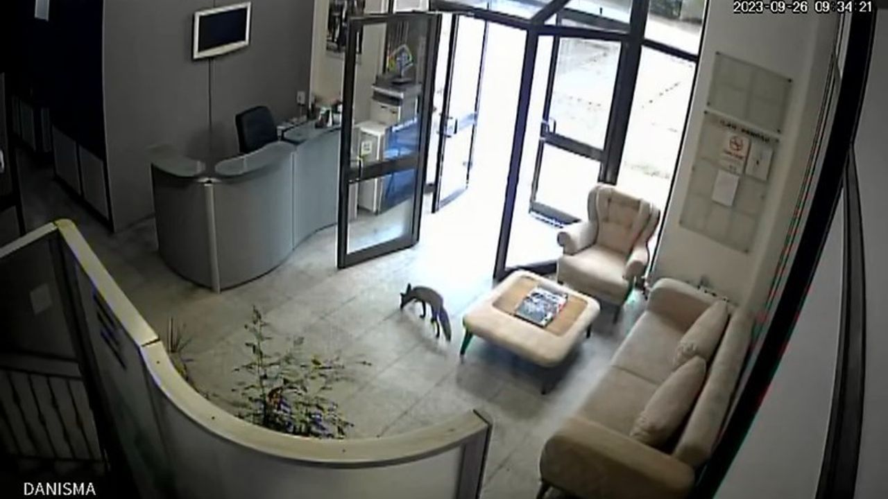Bursa’da şehir merkezine nasıl geldiği bilinmeyen tilki, karnı acıkınca sığınacak yer aradı. Tilki, Bursa’dan yayın yapan Line TV’nin bahçesinde bir süre gezindi. Şaşkın tilki daha sonra ofislerin olduğu bölüme yöneldi. Güvenlik kameraları tarafından kaydedilen tilki, içeri girdikten sonra üst kattaki odaları dolaşmaya başladı.