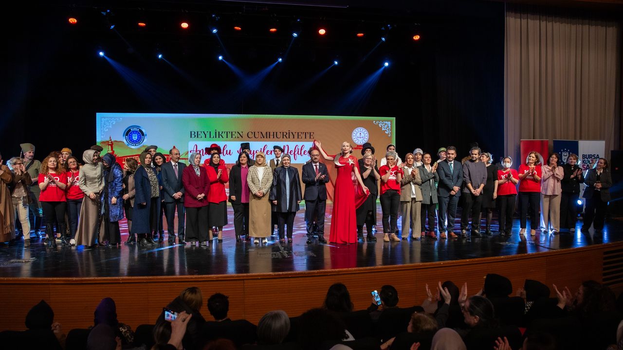 Türkiye Cumhuriyeti’nin 100’üncü yılı programları çerçevesinde Bursa Büyükşehir Belediyesi ve Bursa Olgunlaşma Enstitüsü işbirliğinde düzenlenen ‘Beylikten Cumhuriyete Anadolu Giysileri’ defilesi ve ‘100.Yıl Sergisi’ Atatürk Kongre Kültür Merkezi’nde yapıldı. Bursa Milletvekili Emel Gözükara Durmaz ve Emine Yavuz Gözgeç, İl Milli Eğitim Müdürü Dr. Ahmet Alireisoğlu, Büyükşehir Belediyesi Başkanvekili Halide Serpil Şahin, Bursa Valisi Mahmut Demirtaş’ın eşi Beyhan Demirtaş ve sanatseverler katıldı.