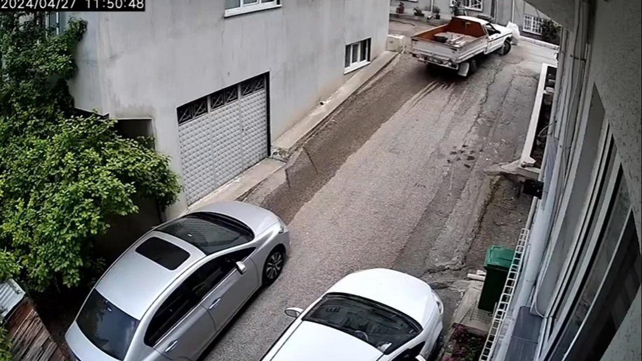 Gaz ayarını iyi yapamayan sürücü, park halindeki otomobile çarptı. Kaza yaptığını fark ettikten sonra patinaj yaparak yokuştan çıkan sürücü, kaçarak kayıplara karıştı. O anlar saniye saniye güvenlik kamerasına yansıdı.